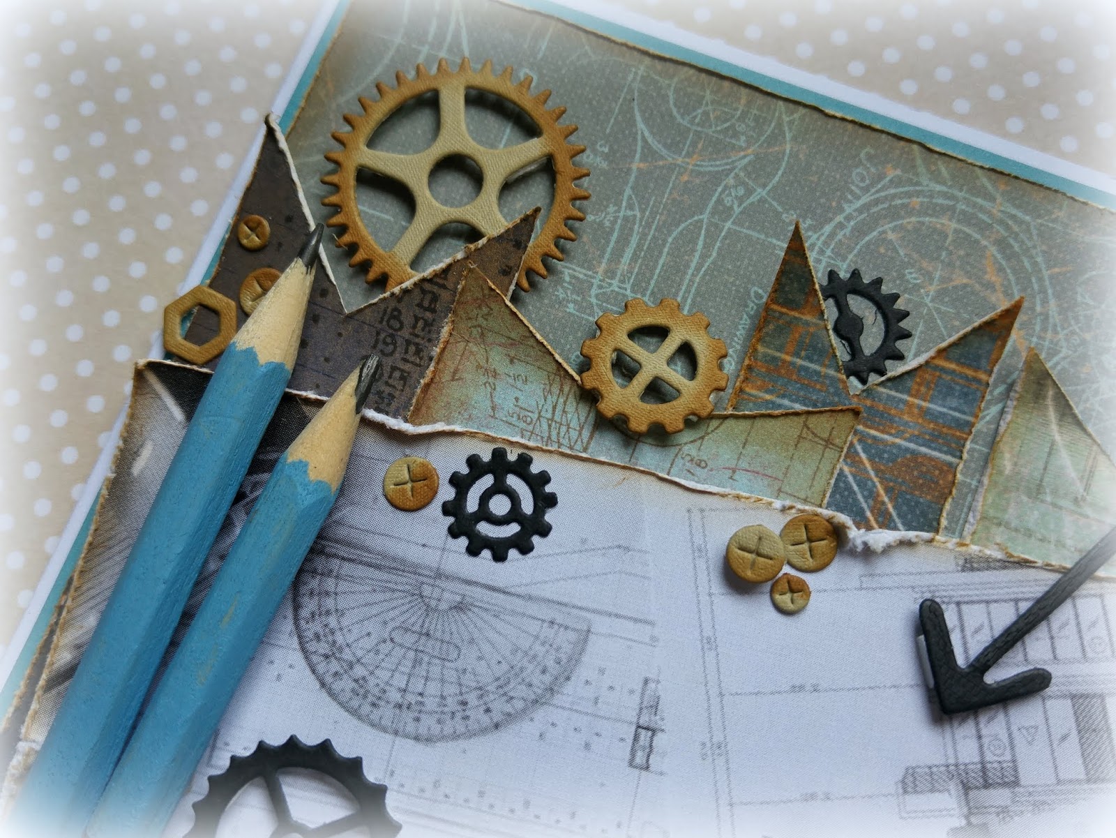 Tym razem kartka z gratulacjami dla absolwenta architektury, który właśnie obronił swój dyplom. Prośba była, aby na kartce znalazły się ołówki, linijka, jakiś rysunek techniczny itp. Na szczęście miałam jeszcze ścinki papierów idealnie na tę okazję pasujących. Dołożyłam grafikę ( zdjęcie ), które darmowo pobrałam ze strony: Freepik.com, design by Mindandi.